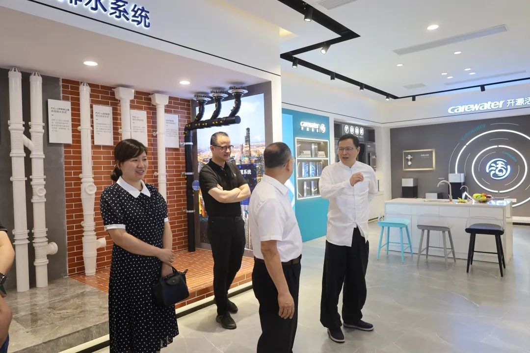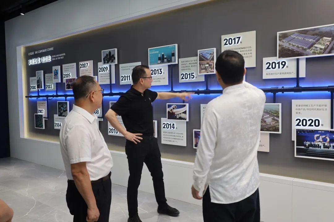 在郑董、林总和邱总的陪同下,领导们对集团展厅进行了参观。郑董对王理事长一行表示热烈欢迎,对中国塑料加工工业协会给予的关心与支持表示感谢,并围绕公司的发展历程、企业文化、发展规划、产业现状、产品系统等几个方面进行了详细介绍。