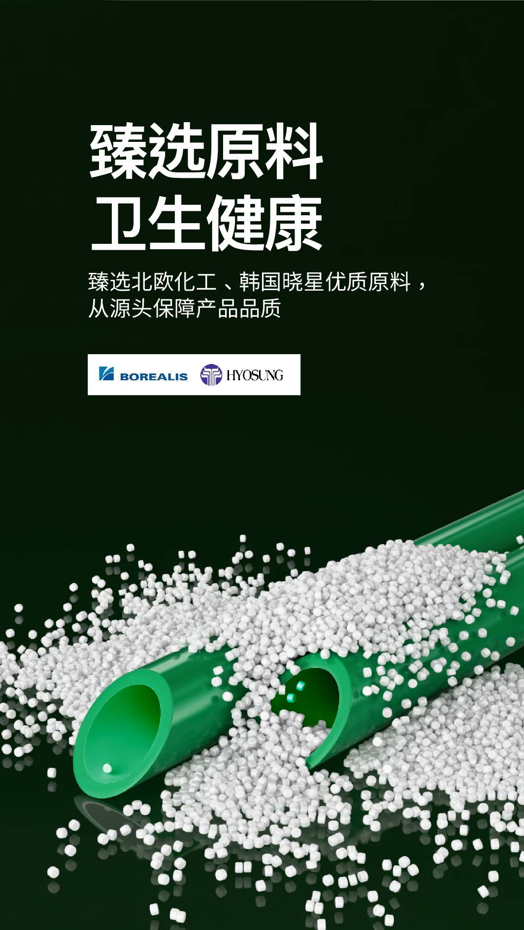 绿色卫生、健康环保(甄选北欧化工、韩国晓星优质原料);耐腐蚀性强、稳定性好;