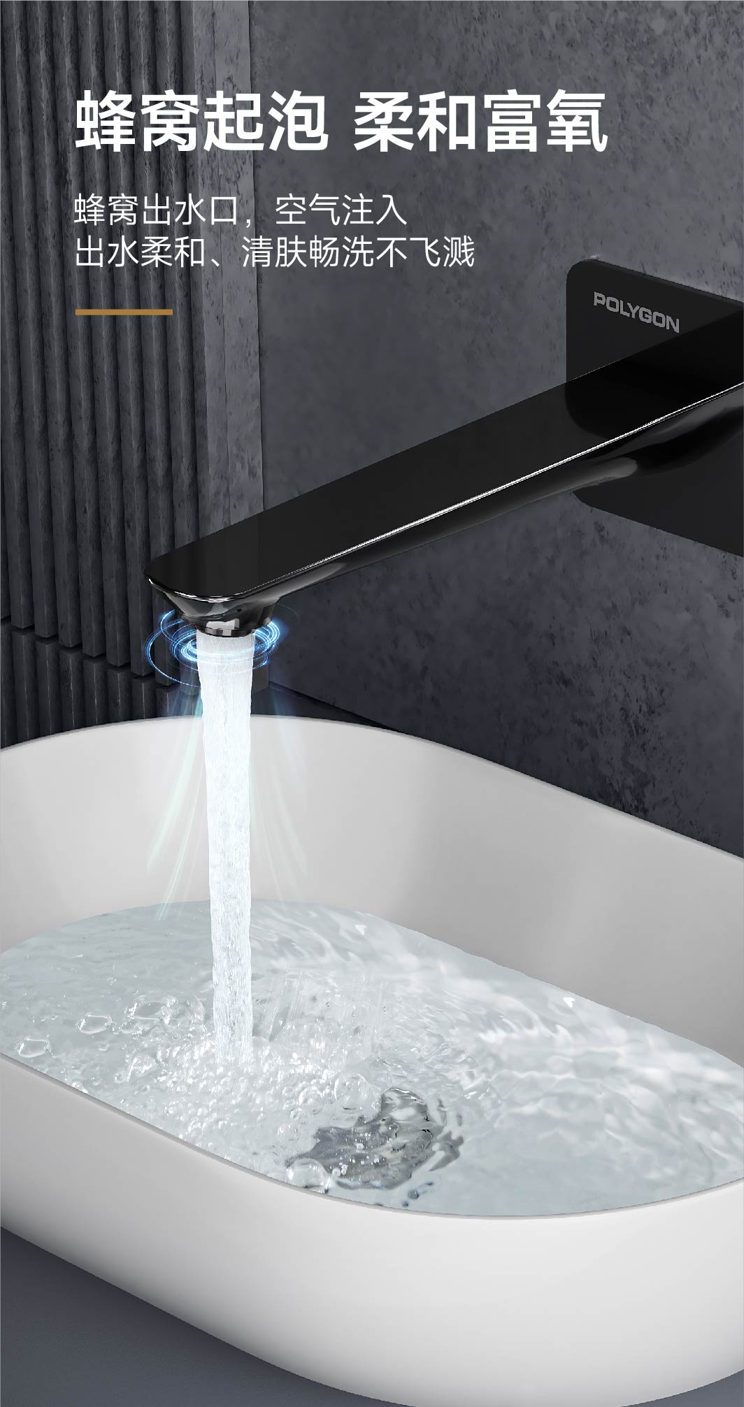 拒绝藏污、更净一步;蜂窝起泡、柔和富氧;玻璃画面、光滑如镜;维护无忧、节约成本;热熔焊接、安全可靠