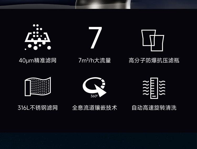 7m3/h超大通量、40um精准过滤